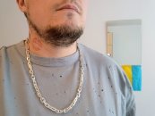 Полновесная цепочка.Очень популярное среди мужчин плетение «Рамзес», также на просторах интернета данное плетение можно увидеть под названием «Двойной обратный бисмарк». В особенности мужское внимание привлекают толстые серебряные цепочки из «Двойного обратного бисмарка» с размерами близкими к размерам на фото. И тем не менее, если такая цепочка лично для Вас смотрится на шее весьма громоздкой или наоборот маловатой, то Вы без особого труда можете откорректировать практически любой её параметр под свои вкусы, в том числе есть возможность выбрать как с чернением, так и нечернёную или же с родированием.