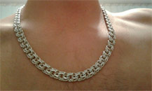 Full-fledged silver chain around the neck.