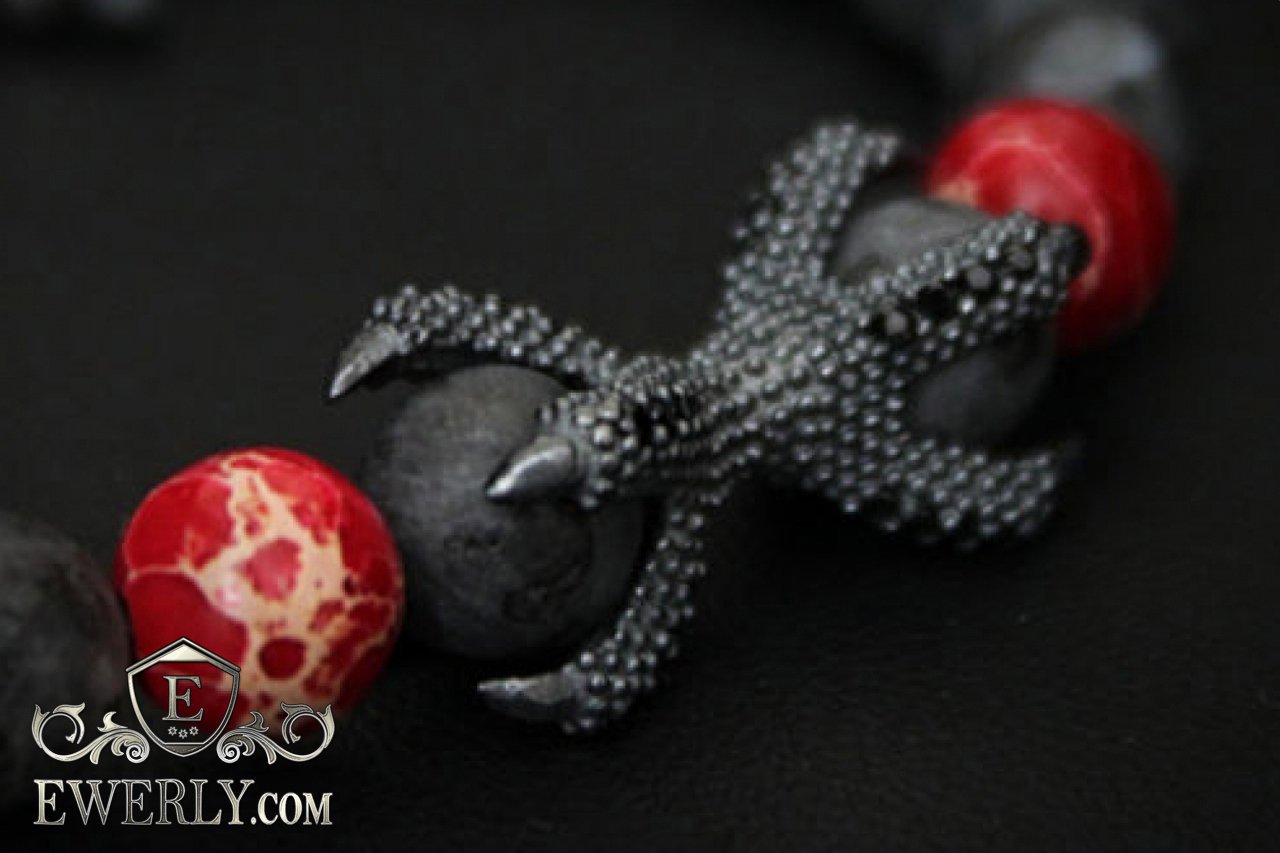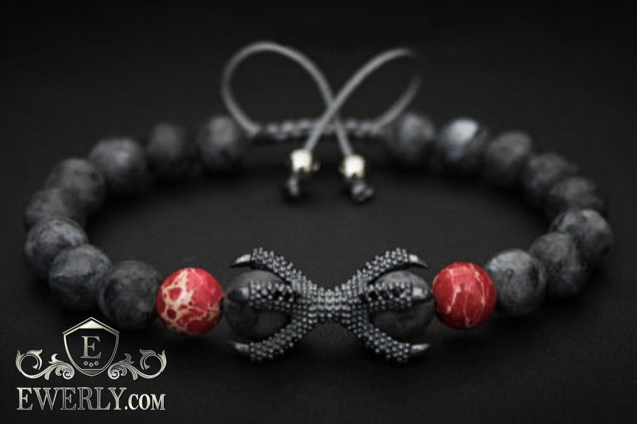 Кам'яний браслет чорний з червоним для чоловіка 123032KQ